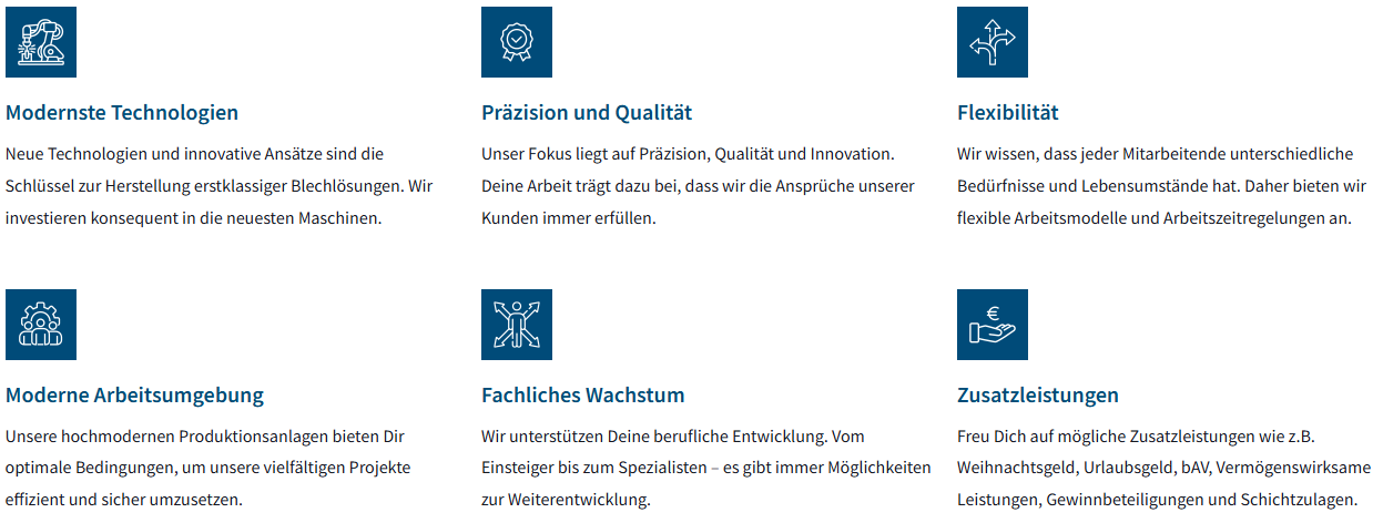Seit 1970 sind wir in der Blechbearbeitung zu Hause und investieren kontinuierlich in die neuesten Technologien. Unsere Mitarbeitenden spielen dabei die zentrale Rolle und bilden das Herzstück unseres Unternehmens.